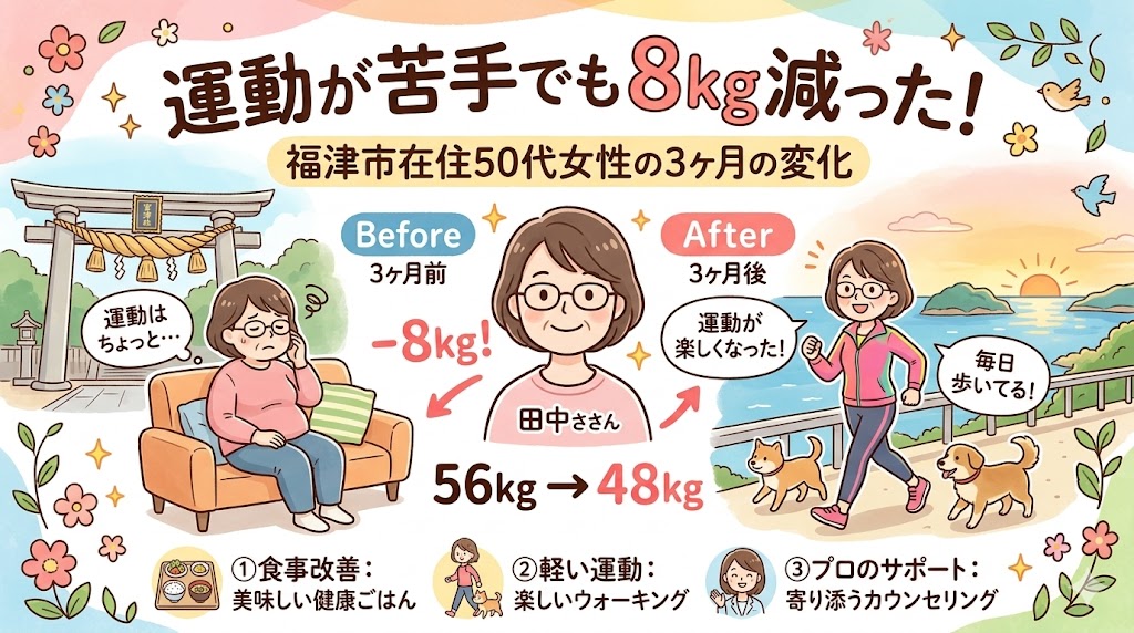 「運動が苦手でも8kg減った」福津市在住50代女性の3ヶ月の変化